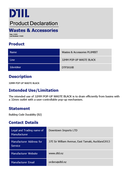 32MM POP-UP WASTE BLACK