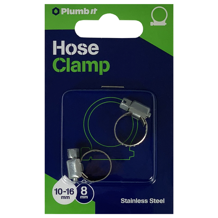 STAINLESS STEEL HOSE CLAMP 10-16MM x 8MM (2PK)