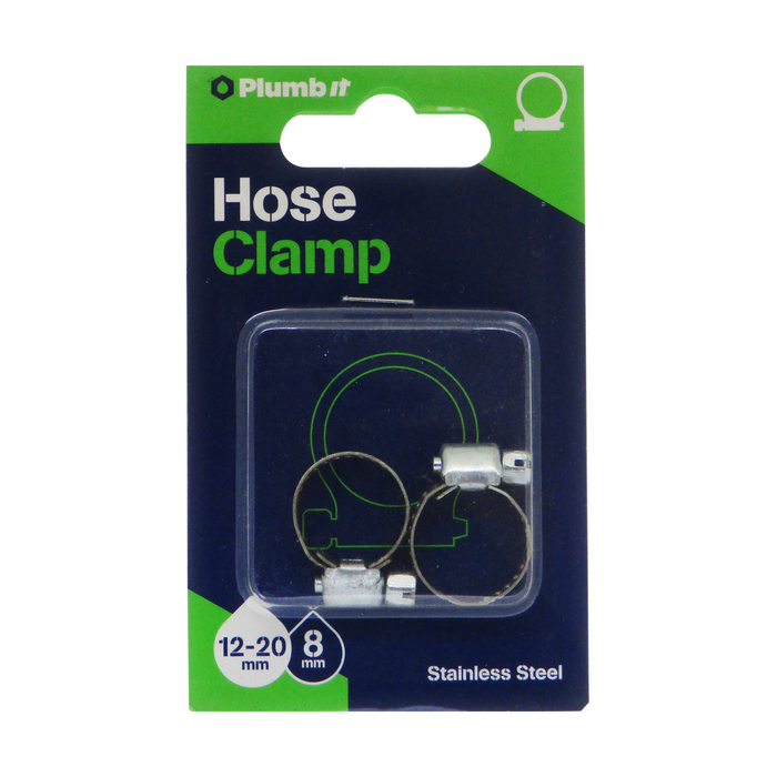 - STAINLESS STEEL HOSE CLAMP 12-20MM x 8MM (2PK)