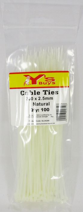 - NYLON CABLE TIES 200 X 2.5MM NATURAL